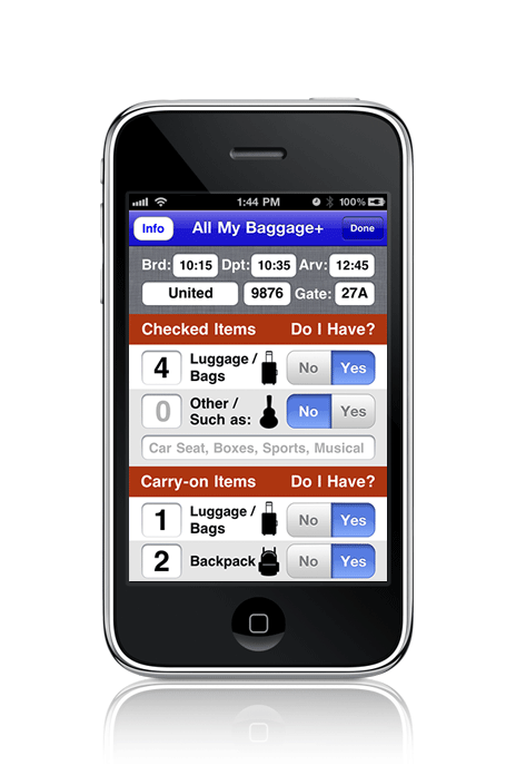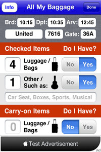 All My Baggage is a checklist that will help you keep track of the number of baggage items that you bring to the airport or train station. During the rush to catch your flight or train, it can be chaotic with so many things to do: park your car or take public transportation, check-in some luggage, check flight status, go through security, and find your gate or terminal. This app will help you to remember all your belongings and prevent leaving anything behind!