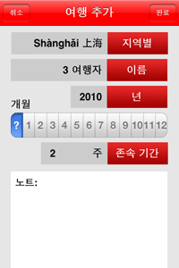 ´ç½ÅÀº ÃÖ±Ù¿¡ Áß±¹ÀÇ ¸ðµç Áö¿ªÀ¸·Î ¿©ÇàÀ»? ´ç½ÅÀº °ú°Å¿Í ¹Ì·¡ ³â°£ ¿©·¯ºÐÀÇ ¹æ¹®À» ÃßÀûÇÒ ¼öÀÖ´Â ½¬¿î ¹æ¹ýÀ» ¿Ã¸®½Ã°Ú½À´Ï±î? ÀÌ ÀÀ¿ë ÇÁ·Î±×·¥Àº, ´Ù¸¥ °¡Á·, ±×¸®°í Ä£±¸°¡ ¹æ¹®ÇÑ ±× ¿µ¿ªÀÇ ±â ¾ï. ´ç½ÅÀº ¿©Çà¿¡ ´ëÇÑ ¼¼ºÎ Á¤º¸¸¦ ÀÔ·ÂÇÏ½Ç ¼ö ÀÖ½À´Ï´Ù. ´ÙÀ½°ú °°Àº ±â´ÉÀÌ Æ÷ÇԵǾî ÀÖ½À´Ï´Ù :