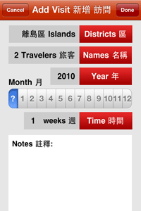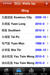 Have you traveled to any districts recently in Hong Kong? Would you like an easy way to keep track of your visits over the past and future years? This app keeps track of the districts that you and other family members and friends have visited. It also allows you to input optional details that should be useful to you in the future. Includes the following features:
