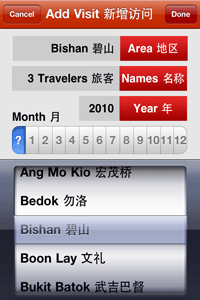 Have you traveled to any of the various areas in Singapore recently? Would you like an easy way to keep track of your visits over the past and future years? This app keeps track of the areas that you and other family members and friends have visited, and also allows input of optional details that should be useful to you in the future. Includes the following features: