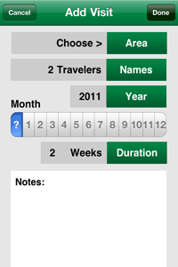 - Allows you to input text notes about your visit, such as the region, city, town, village, district, neighborhood, or anything else.